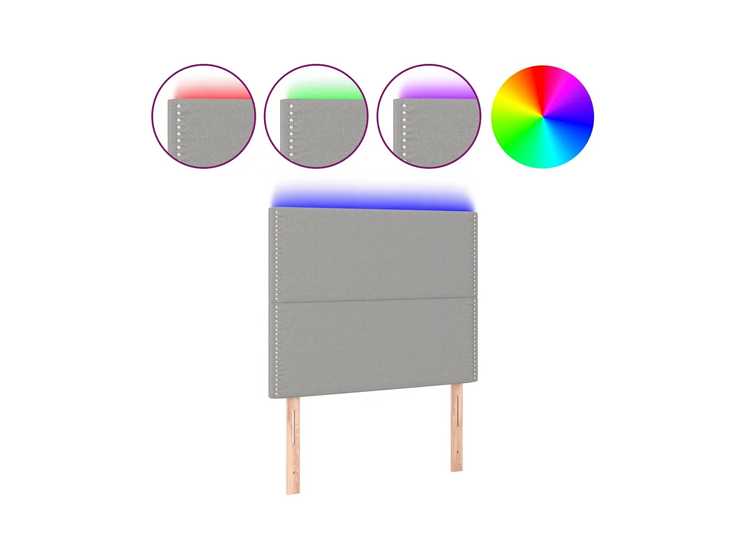 Cabecero | Cabezal de Cama | Mueble cabecero con luces LED tela gris claro 100x5x118/128 cm