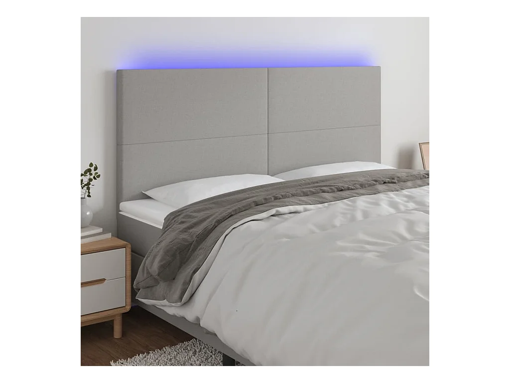 Cabecero | Cabezal de Cama | Mueble cabecero con luces LED tela gris claro 180x5x118/128 cm