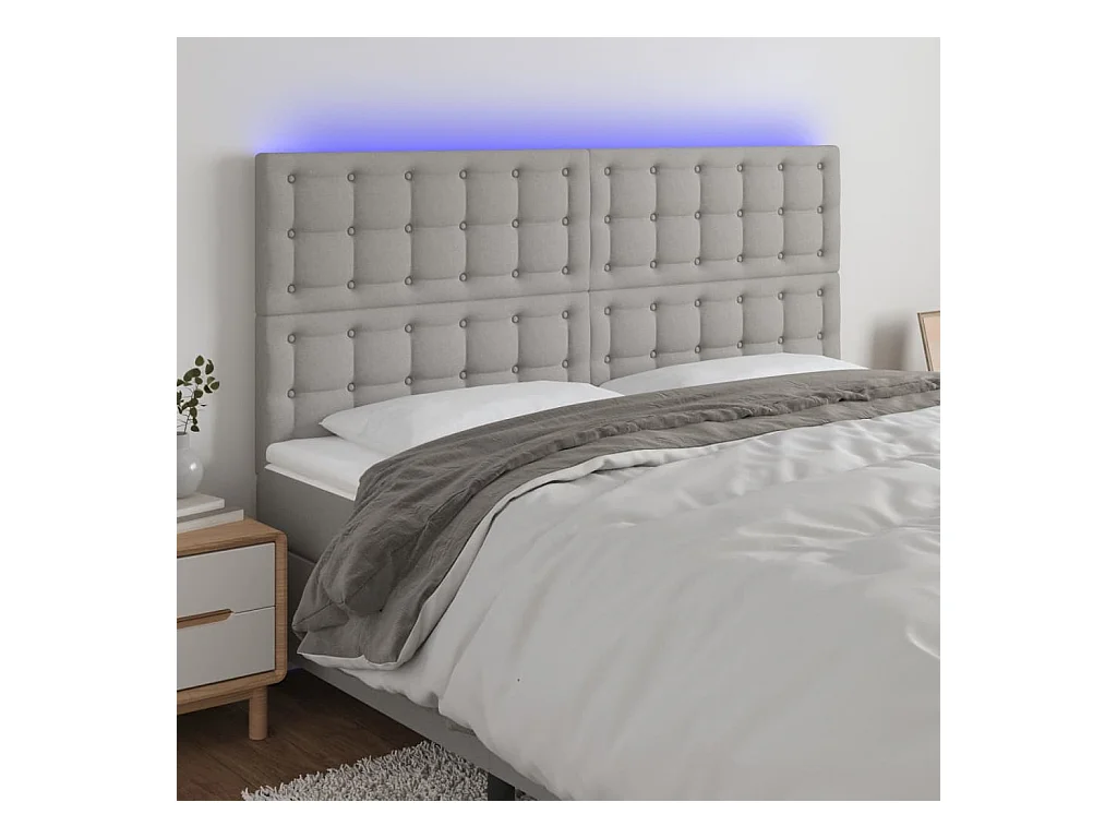 Cabecero | Cabezal de Cama | Mueble cabecero con luces LED tela gris claro 180x5x118/128 cm