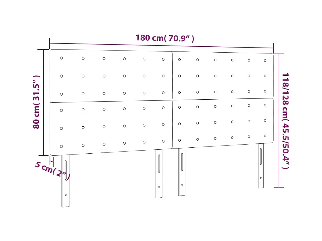 Cabecero | Cabezal de Cama | Mueble cabecero con luces LED cuero sintético gris 180x5x118/128 cm