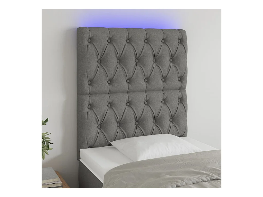 Cabecero | Cabezal de Cama | Mueble cabecero con luces LED tela gris oscuro 100x7x118/128 cm