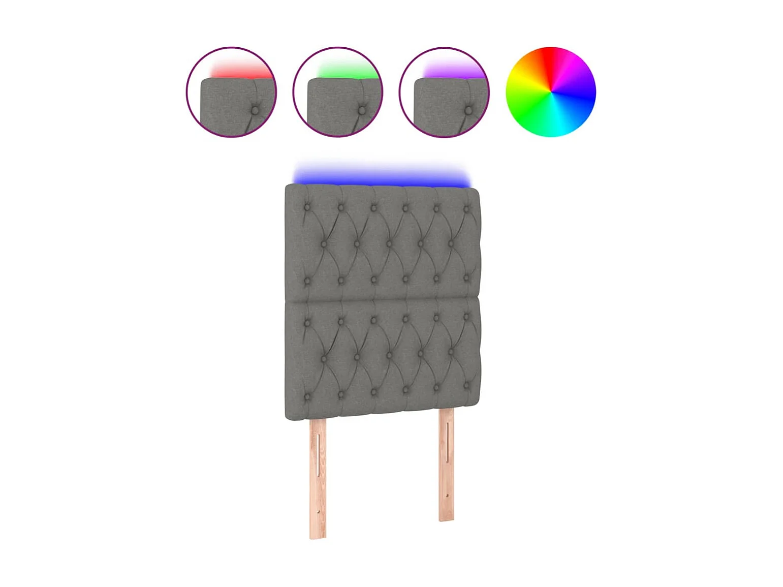 Cabecero | Cabezal de Cama | Mueble cabecero con luces LED tela gris oscuro 80x5x118/128 cm