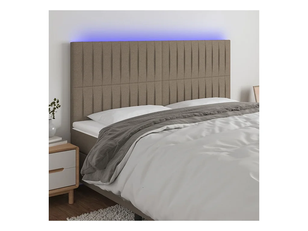 Cabecero | Cabezal de Cama | Mueble cabecero con luces LED tela gris taupe 180x5x118/128 cm