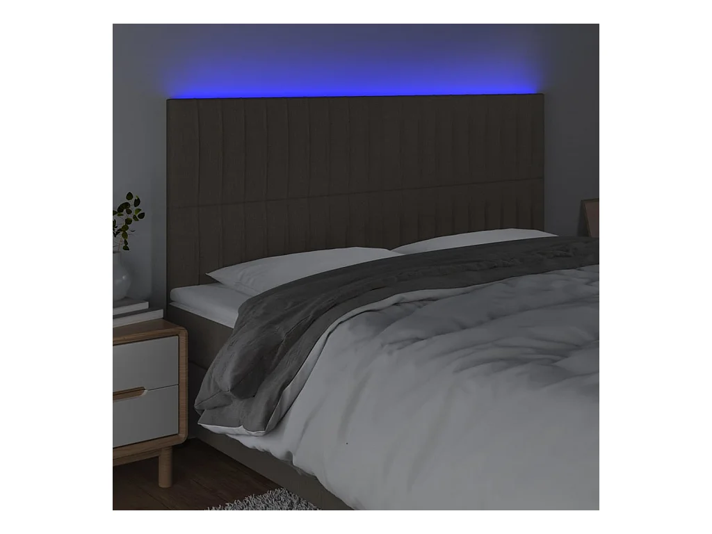 Cabecero | Cabezal de Cama | Mueble cabecero con luces LED tela gris taupe 200x5x118/128 cm