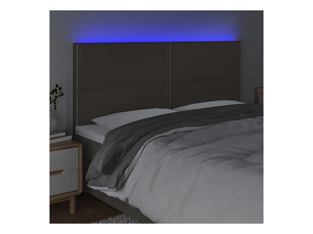 Cabecero | Cabezal de Cama | Mueble cabecero con luces LED tela gris taupe 200x5x118/128 cm
