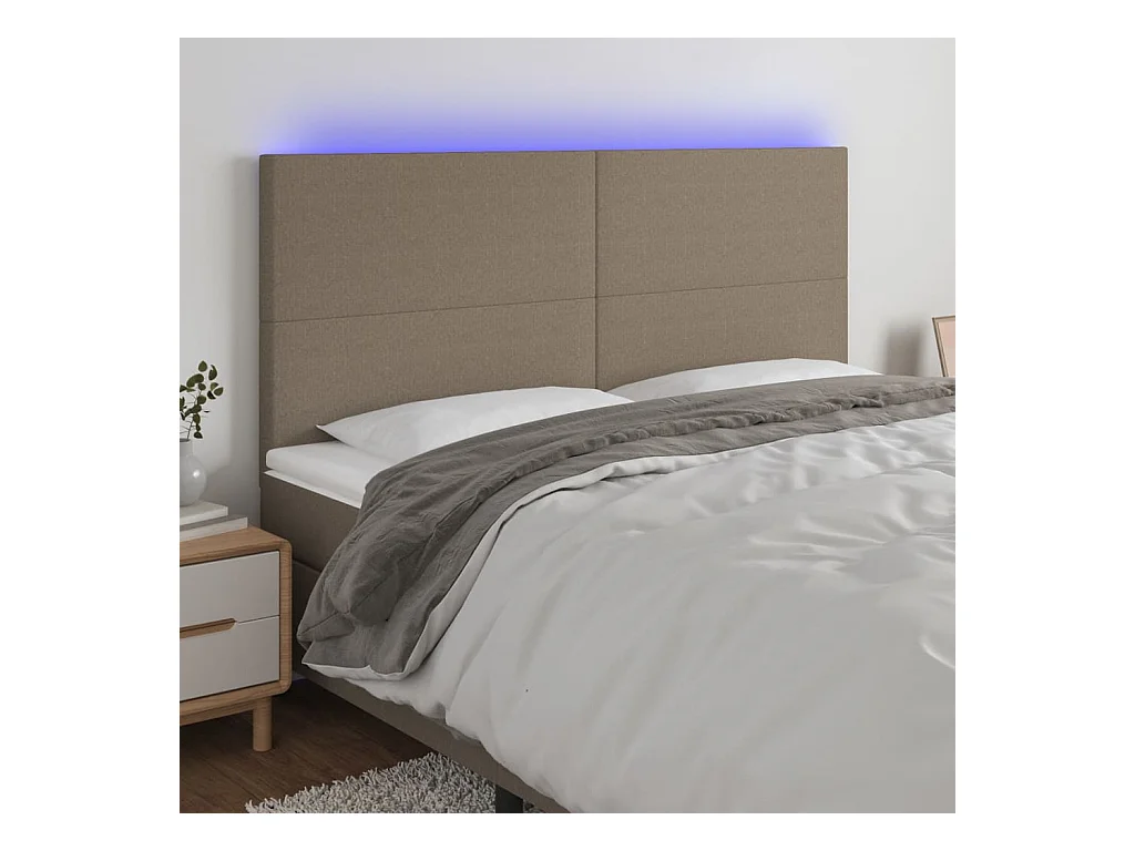 Cabecero | Cabezal de Cama | Mueble cabecero con luces LED tela gris taupe 200x5x118/128 cm