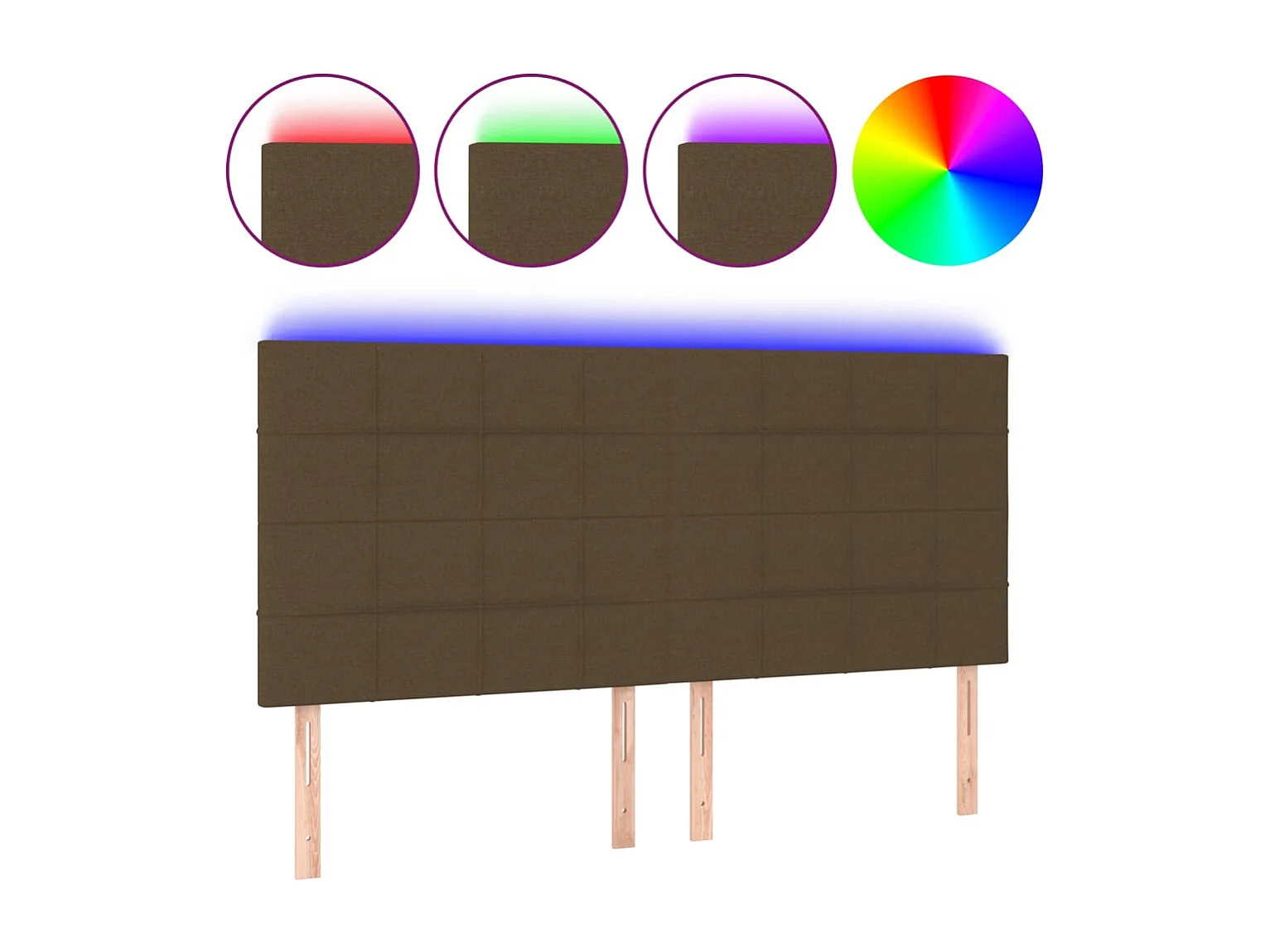 Cabecero | Cabezal de Cama | Mueble cabecero con luces LED tela marrón oscuro 200x5x118/128 cm