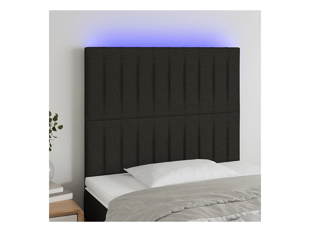 Cabecero | Cabezal de Cama | Mueble cabecero con luces LED tela negro 80x5x118/128 cm