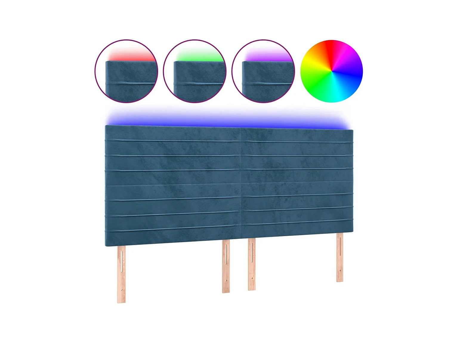 Cabecero | Cabezal de Cama | Mueble cabecero con luces LED terciopelo azul oscuro 180x5x118/128 cm