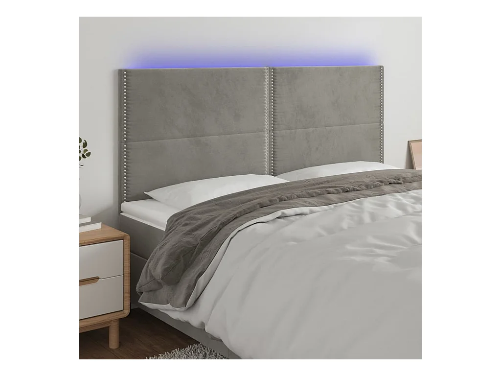 Cabecero | Cabezal de Cama | Mueble cabecero con luces LED terciopelo gris claro 200x5x118/128 cm