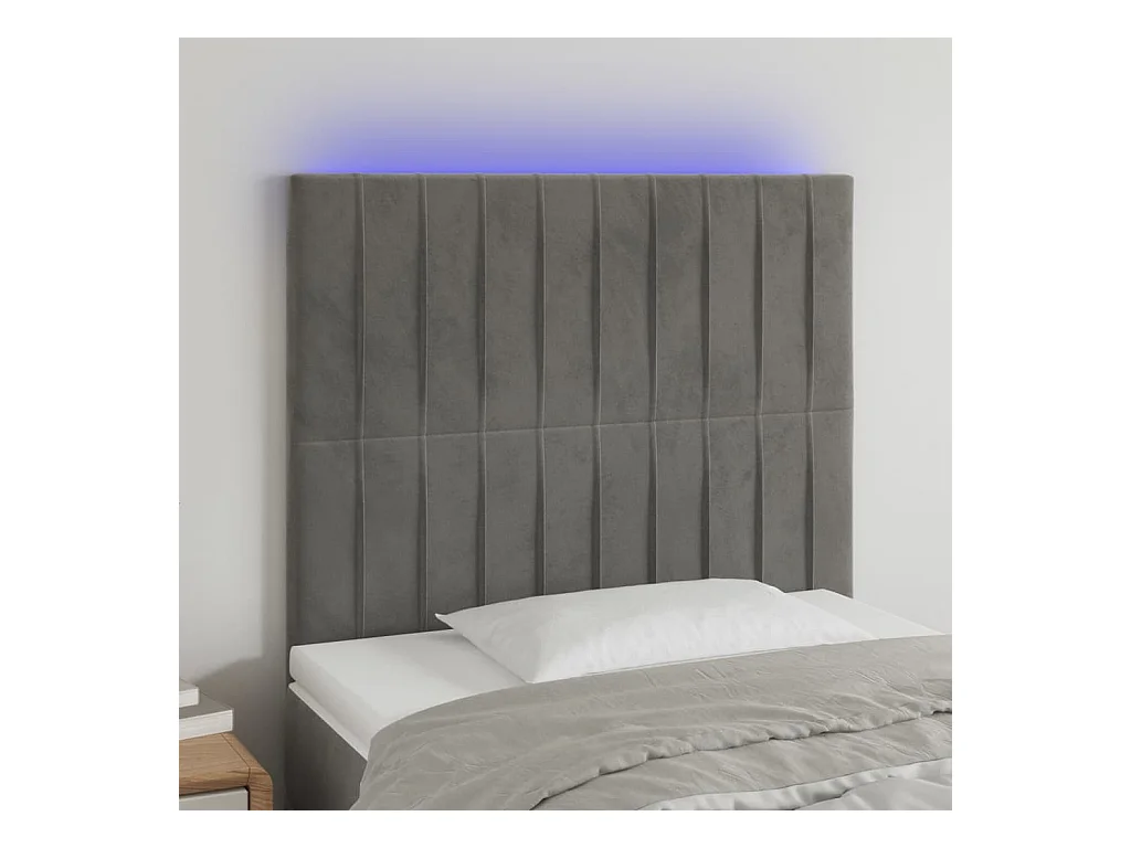 Cabecero | Cabezal de Cama | Mueble cabecero con luces LED terciopelo gris claro 80x5x118/128 cm