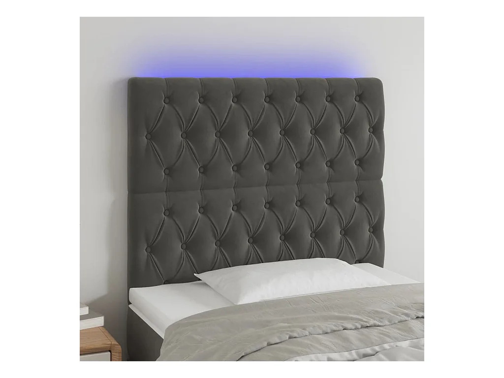 Cabecero | Cabezal de Cama | Mueble cabecero con luces LED terciopelo gris oscuro 100x7x118/128 cm