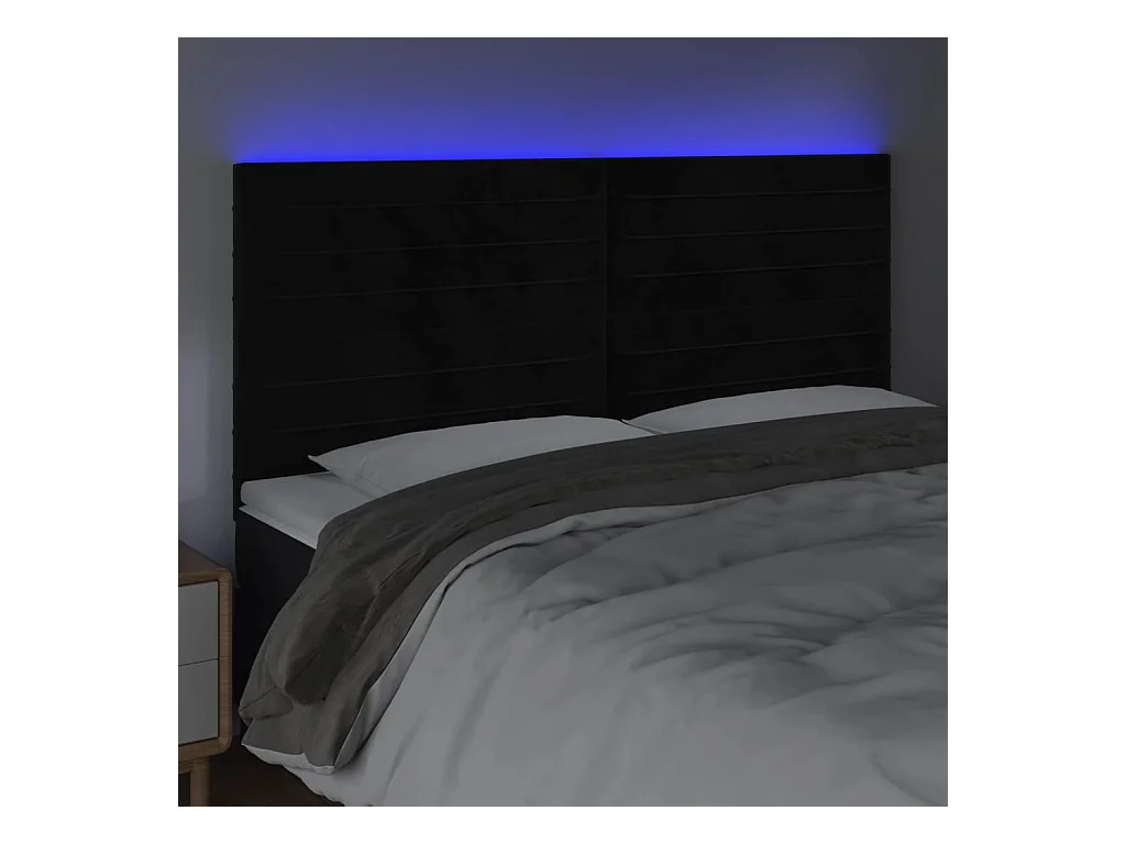 Cabecero | Cabezal de Cama | Mueble cabecero con luces LED terciopelo negro 180x5x118/128 cm