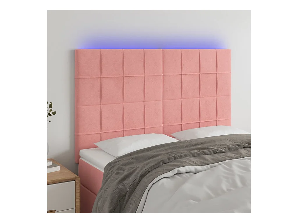 Cabecero | Cabezal de Cama | Mueble cabecero con luces LED terciopelo rosa 144x5x118/128 cm