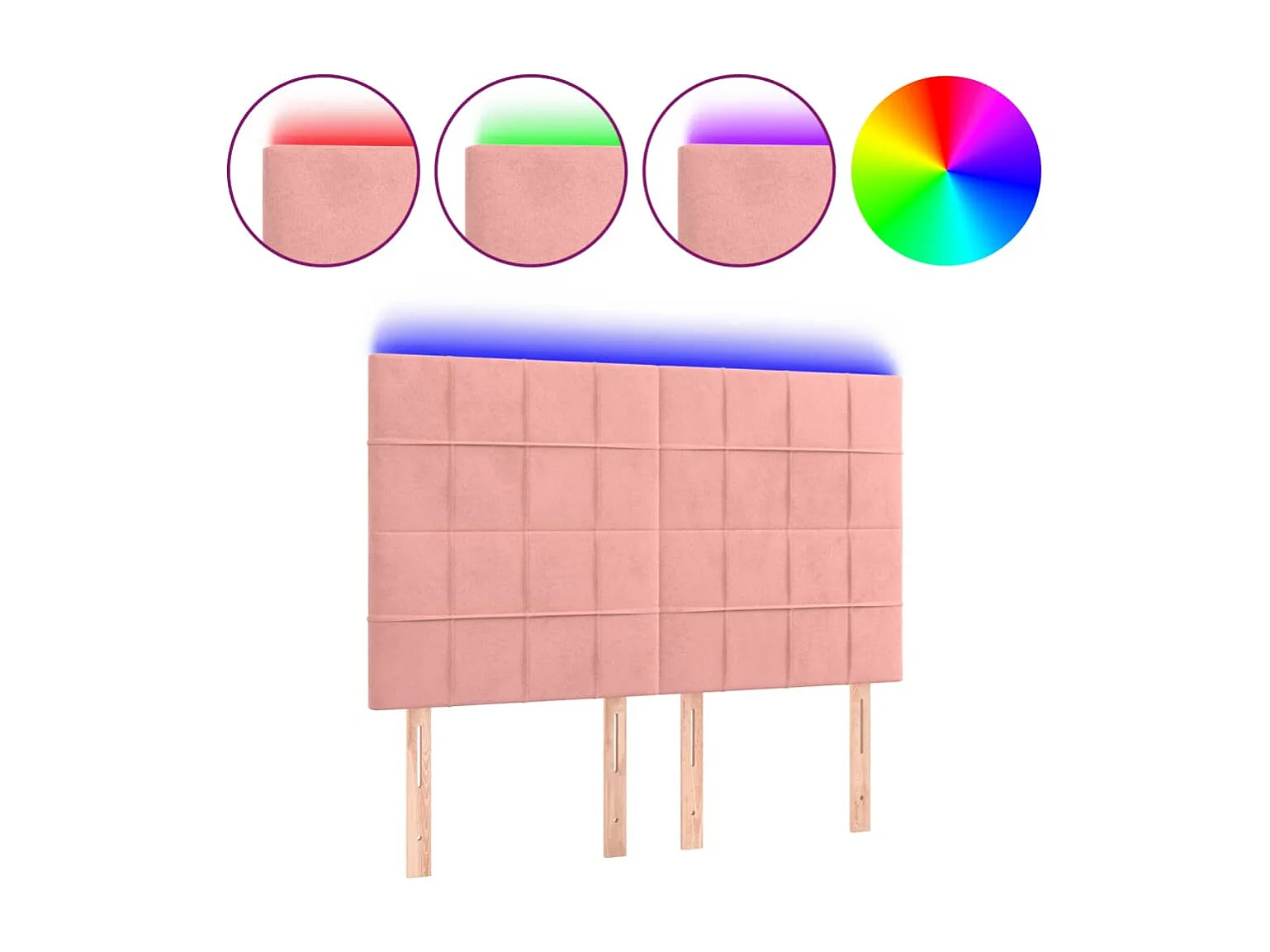 Cabecero | Cabezal de Cama | Mueble cabecero con luces LED terciopelo rosa 200x5x118/128 cm