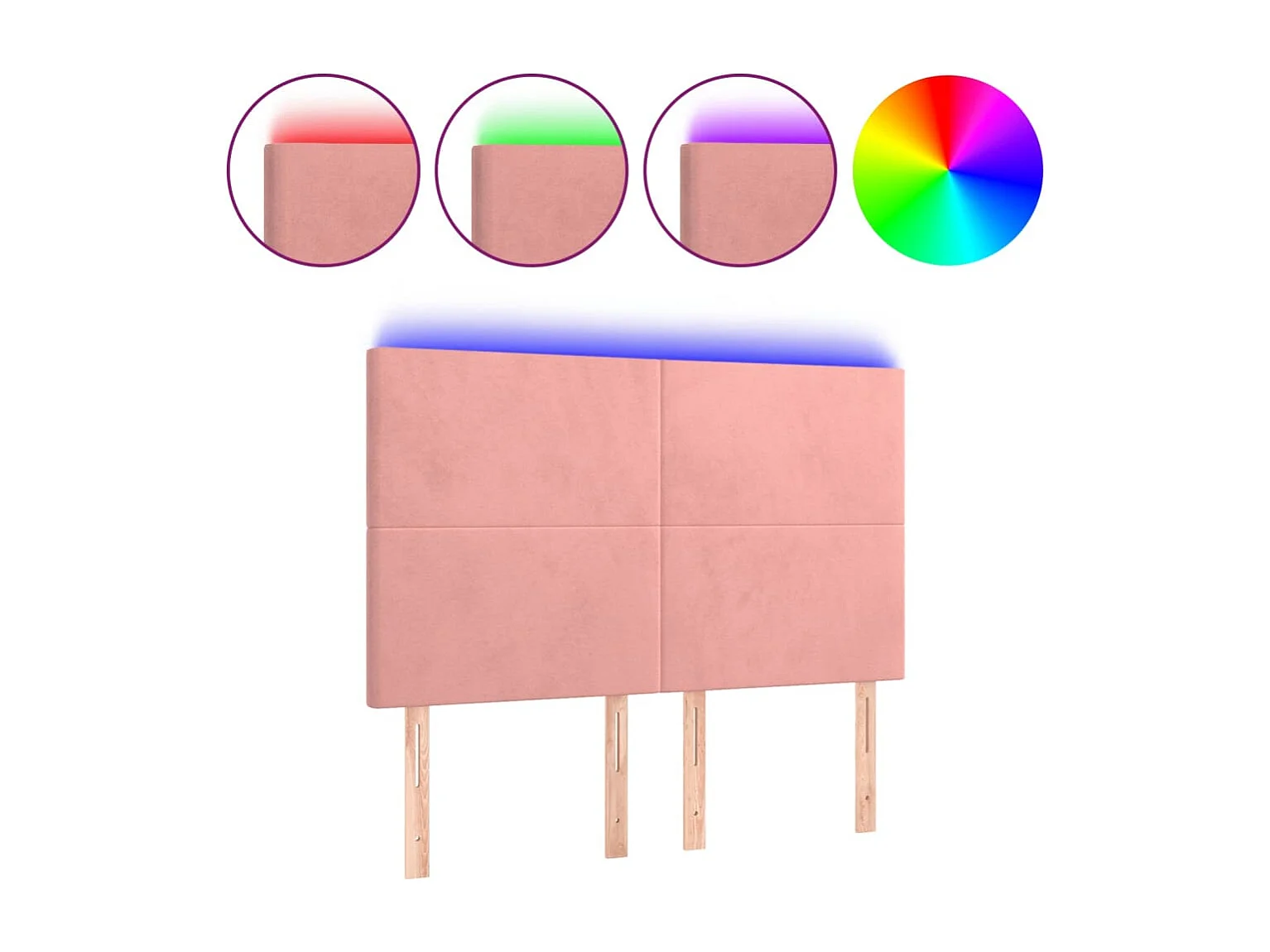 Cabecero | Cabezal de Cama | Mueble cabecero con luces LED terciopelo rosa 200x5x118/128 cm