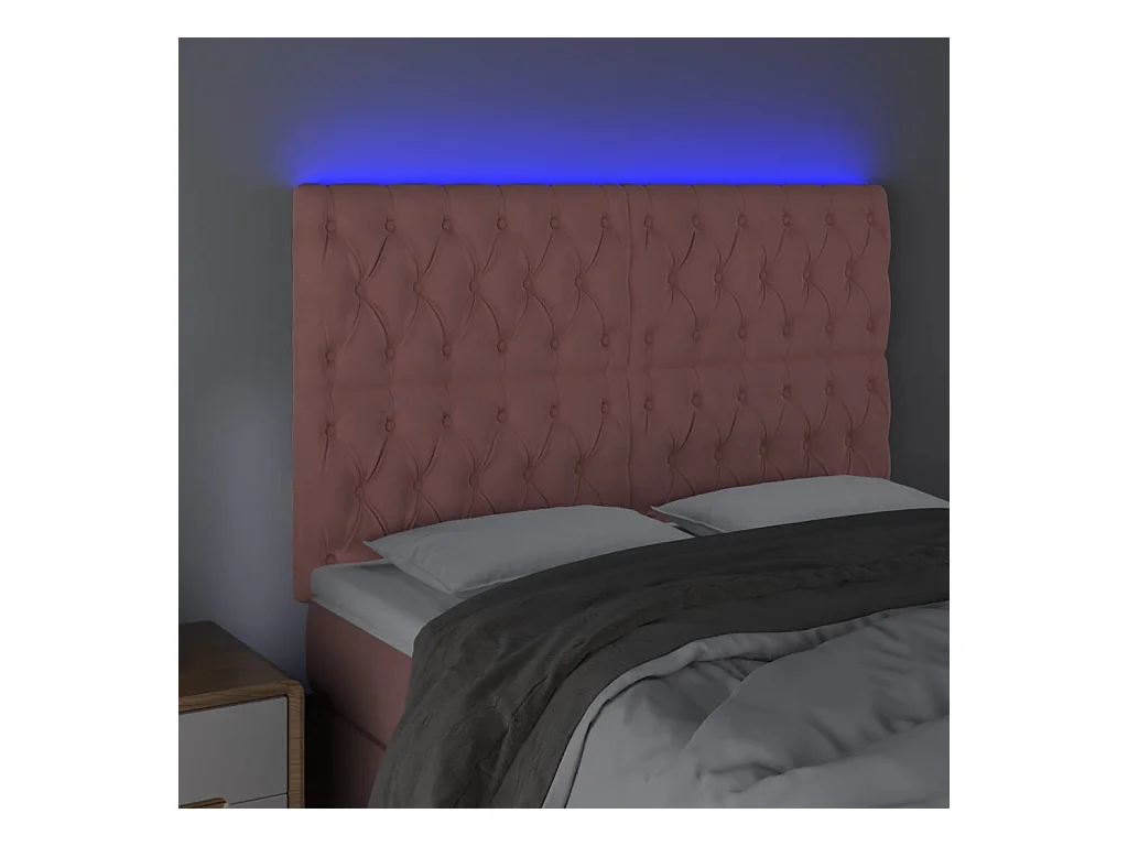 Cabecero | Cabezal de Cama | Mueble cabecero con luces LED terciopelo rosa 160x5x118/128 cm