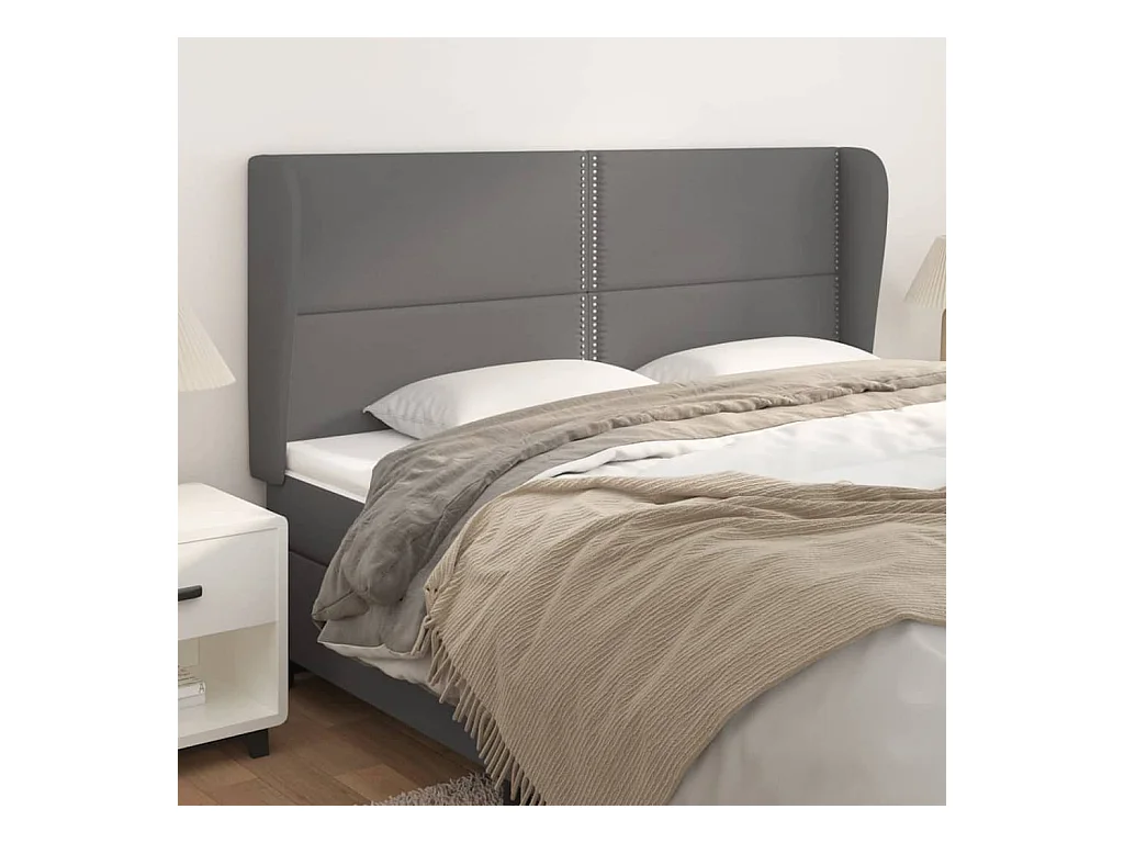 Cabecero | Cabezal de Cama | Mueble cabecero con orejas de tela gris oscuro 183x16x118/128 cm