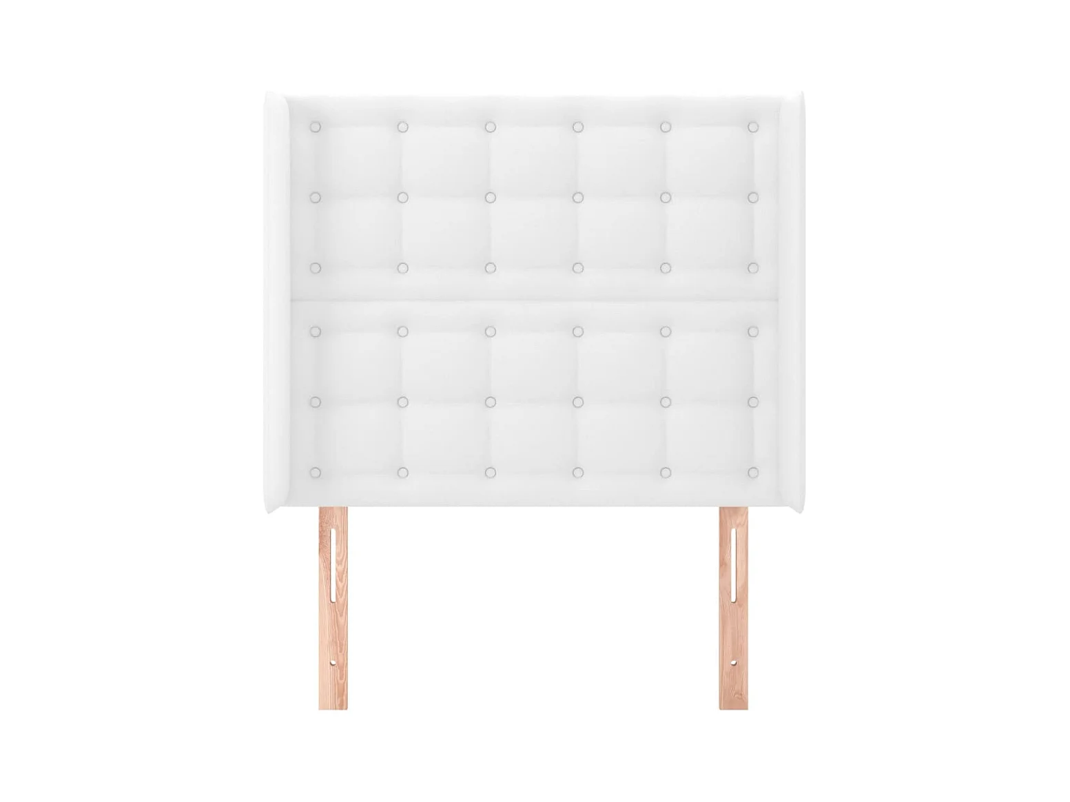 Cabecero | Cabezal de Cama | Mueble cabecero con orejas de cuero sintético blanco 83x16x118/128 cm