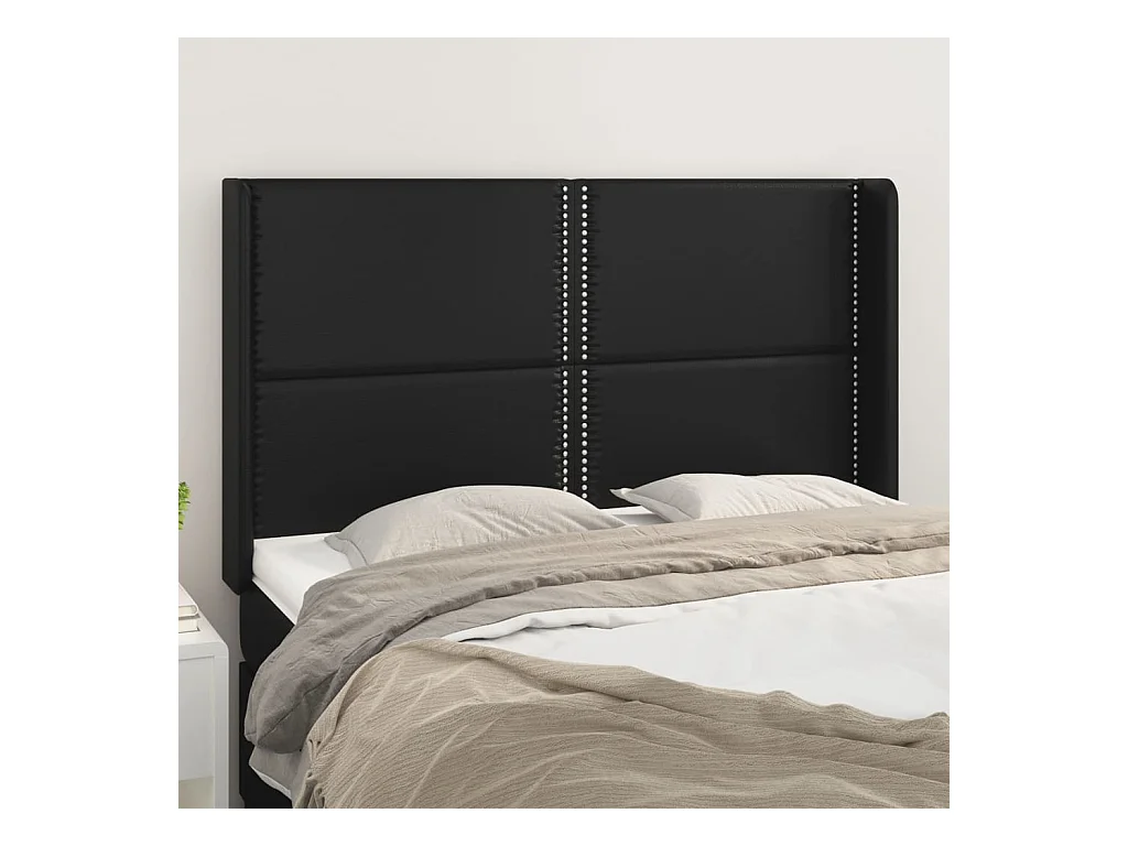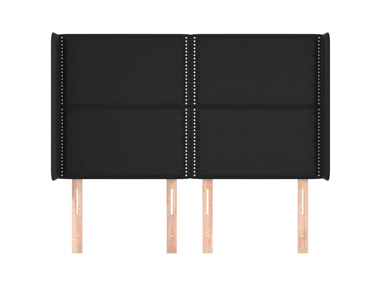 Cabecero | Cabezal de Cama | Mueble cabecero con orejas de cuero sintético negro 147x16x118/128 cm