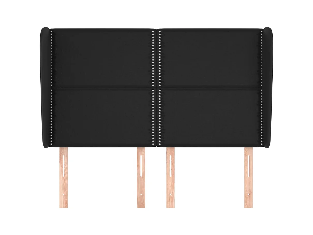 Cabecero | Cabezal de Cama | Mueble cabecero con orejas de cuero sintético negro 147x23x118/128 cm