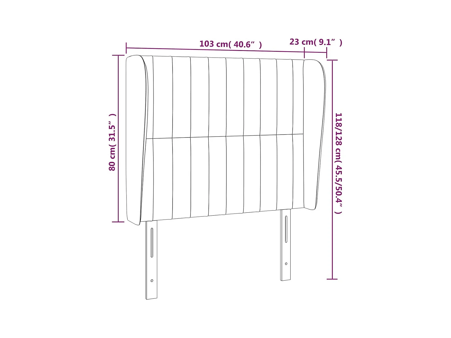Cabecero | Cabezal de Cama | Mueble cabecero con orejas de tela azul 103x23x118/128 cm