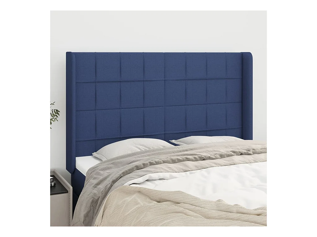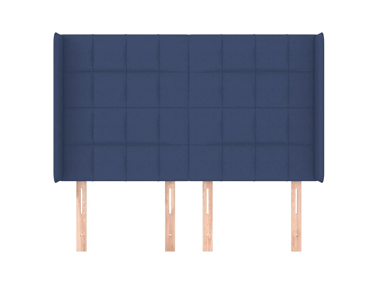 Cabecero | Cabezal de Cama | Mueble cabecero con orejas de tela azul 147x16x118/128 cm