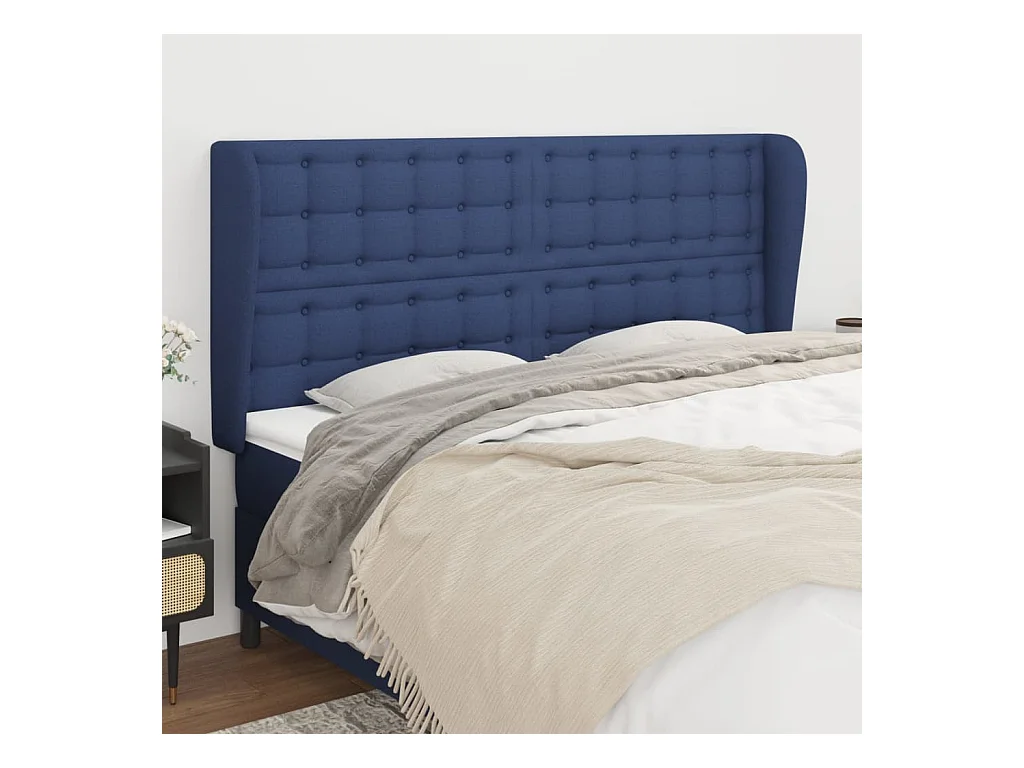 Cabecero | Cabezal de Cama | Mueble cabecero con orejas de tela azul 183x23x118/128 cm