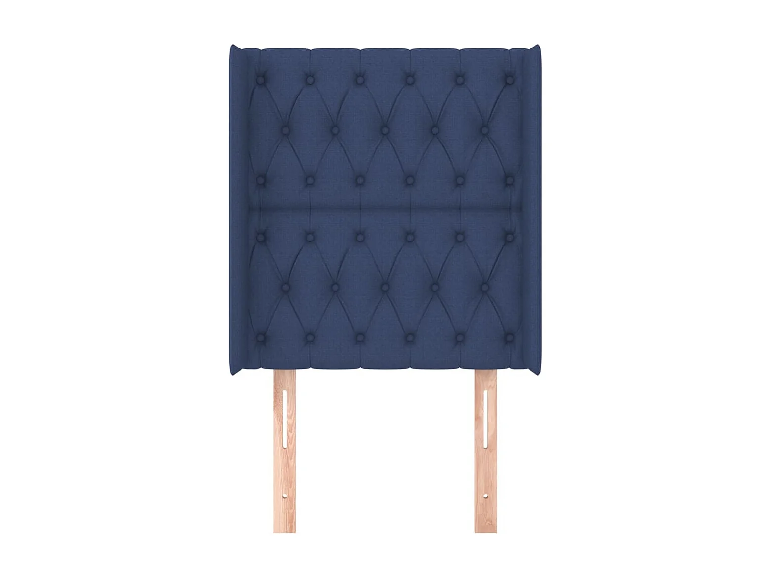 Cabecero | Cabezal de Cama | Mueble cabecero con orejas de tela azul 93x16x118/128 cm