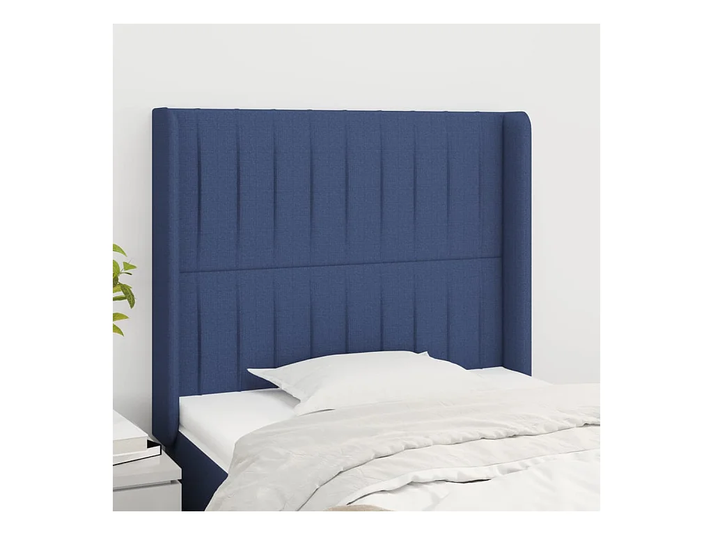 Cabecero | Cabezal de Cama | Mueble cabecero con orejas de tela azul 93x16x118/128 cm