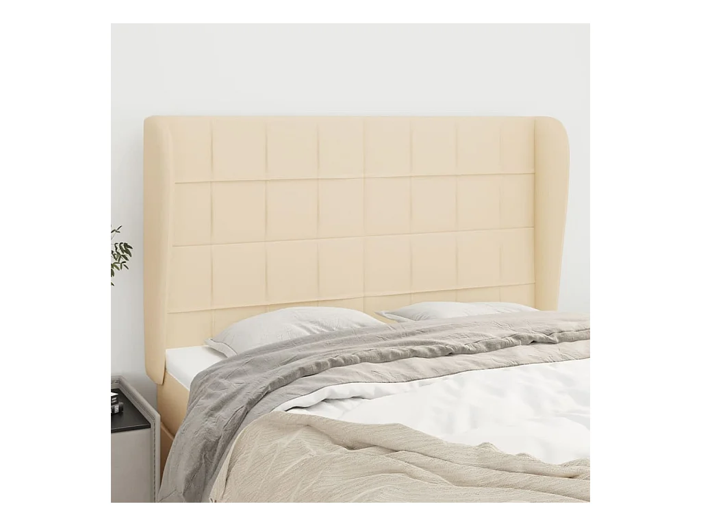 Cabecero | Cabezal de Cama | Mueble cabecero con orejas de tela color crema 147x23x118/128 cm