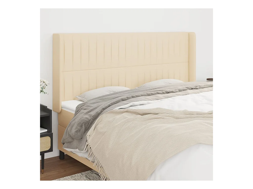 Cabecero | Cabezal de Cama | Mueble cabecero con orejas de tela color crema 203x16x118/128 cm