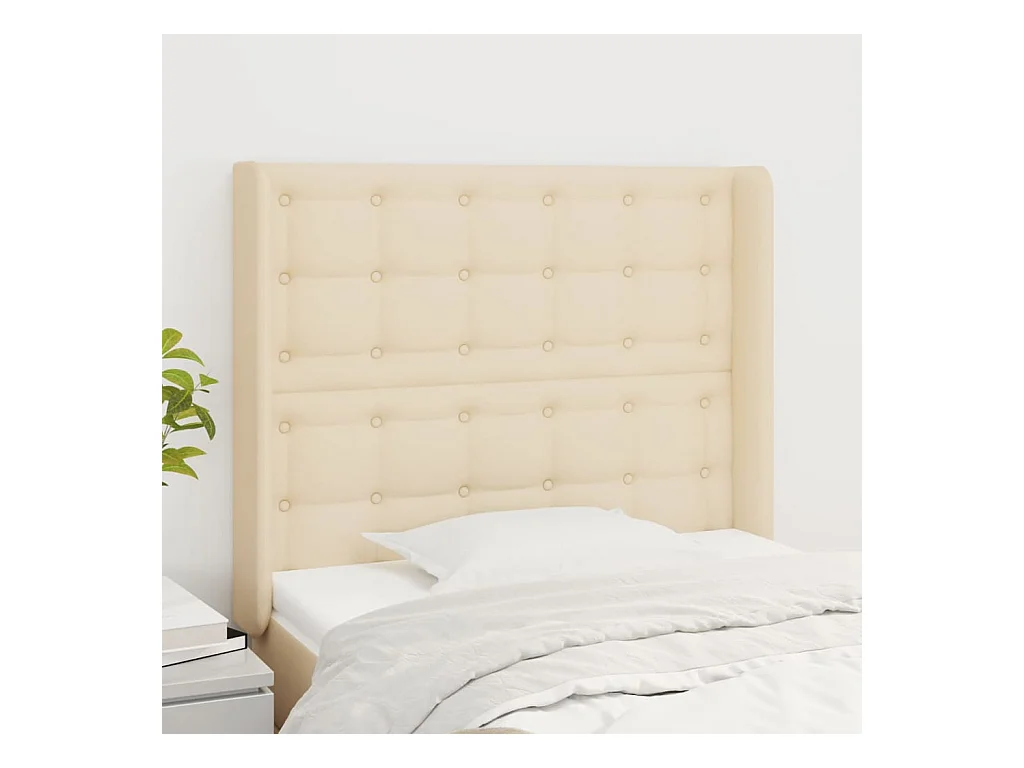 Cabecero | Cabezal de Cama | Mueble cabecero con orejas de tela color crema 93x16x118/128 cm