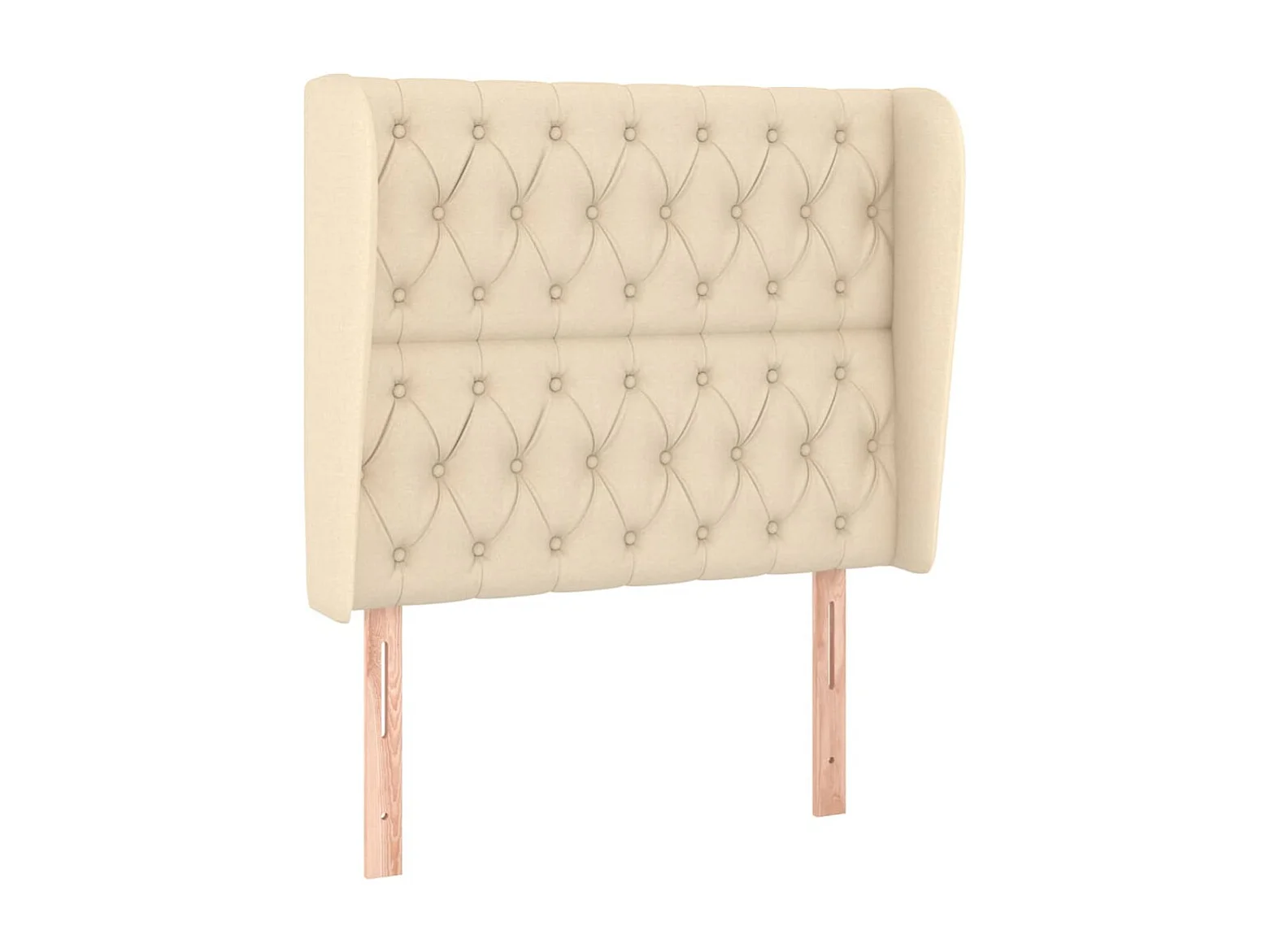 Cabecero | Cabezal de Cama | Mueble cabecero con orejas de tela color crema 93x23x118/128 cm