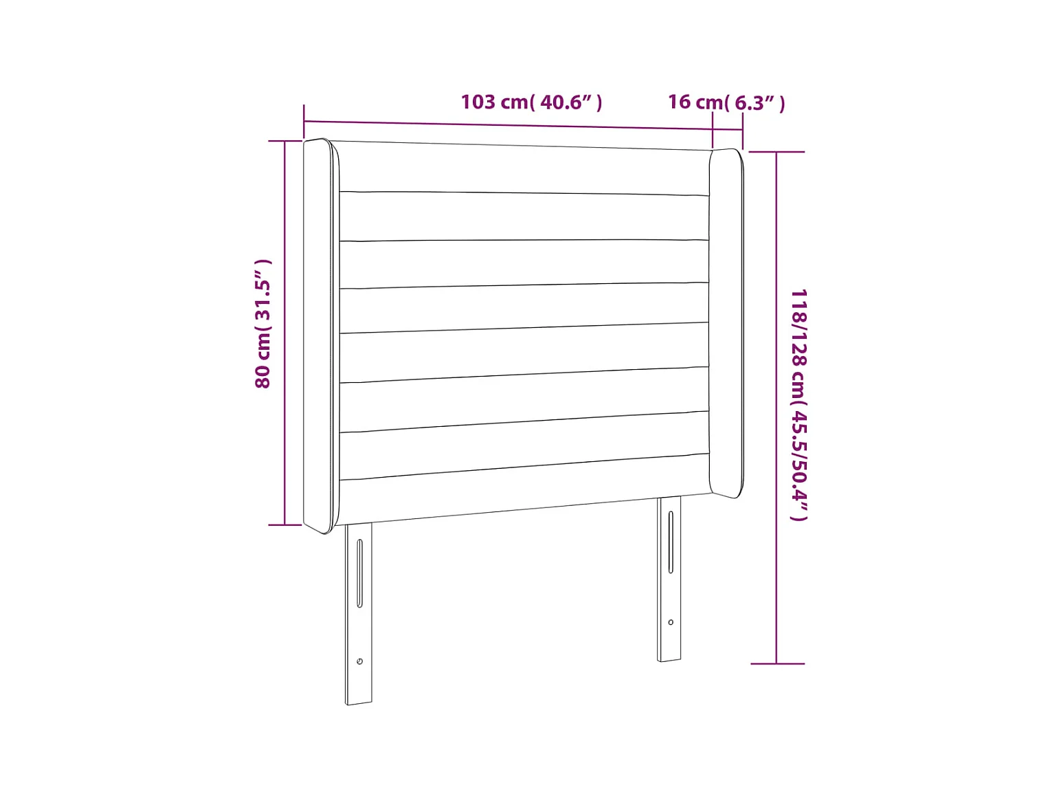 Cabecero | Cabezal de Cama | Mueble cabecero con orejas de tela gris oscuro 103x16x118/128 cm