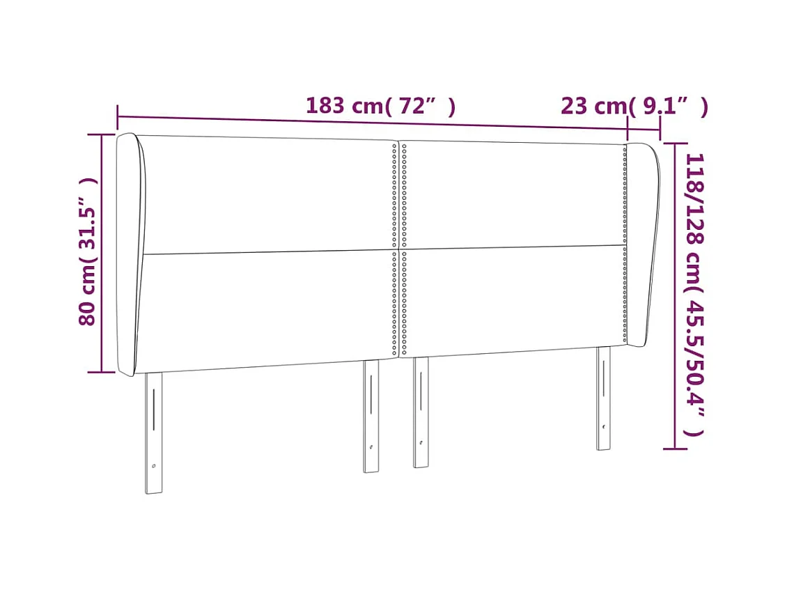 Cabecero | Cabezal de Cama | Mueble cabecero con orejas de tela gris oscuro 183x23x118/128 cm
