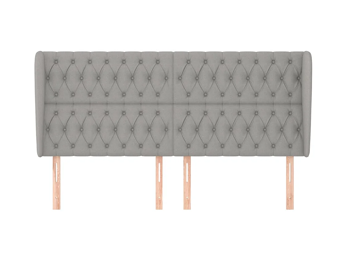 Cabecero | Cabezal de Cama | Mueble cabecero con orejas de tela gris claro 203x16x118/128 cm