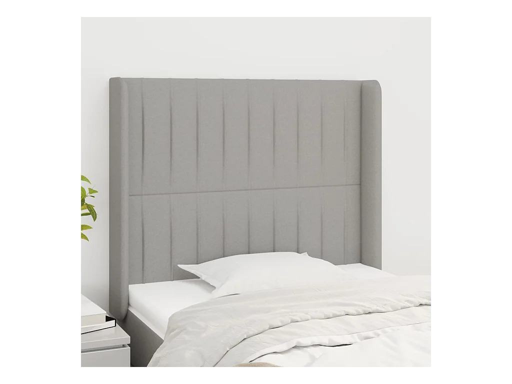 Cabecero | Cabezal de Cama | Mueble cabecero con orejas de tela gris claro 93x16x118/128 cm