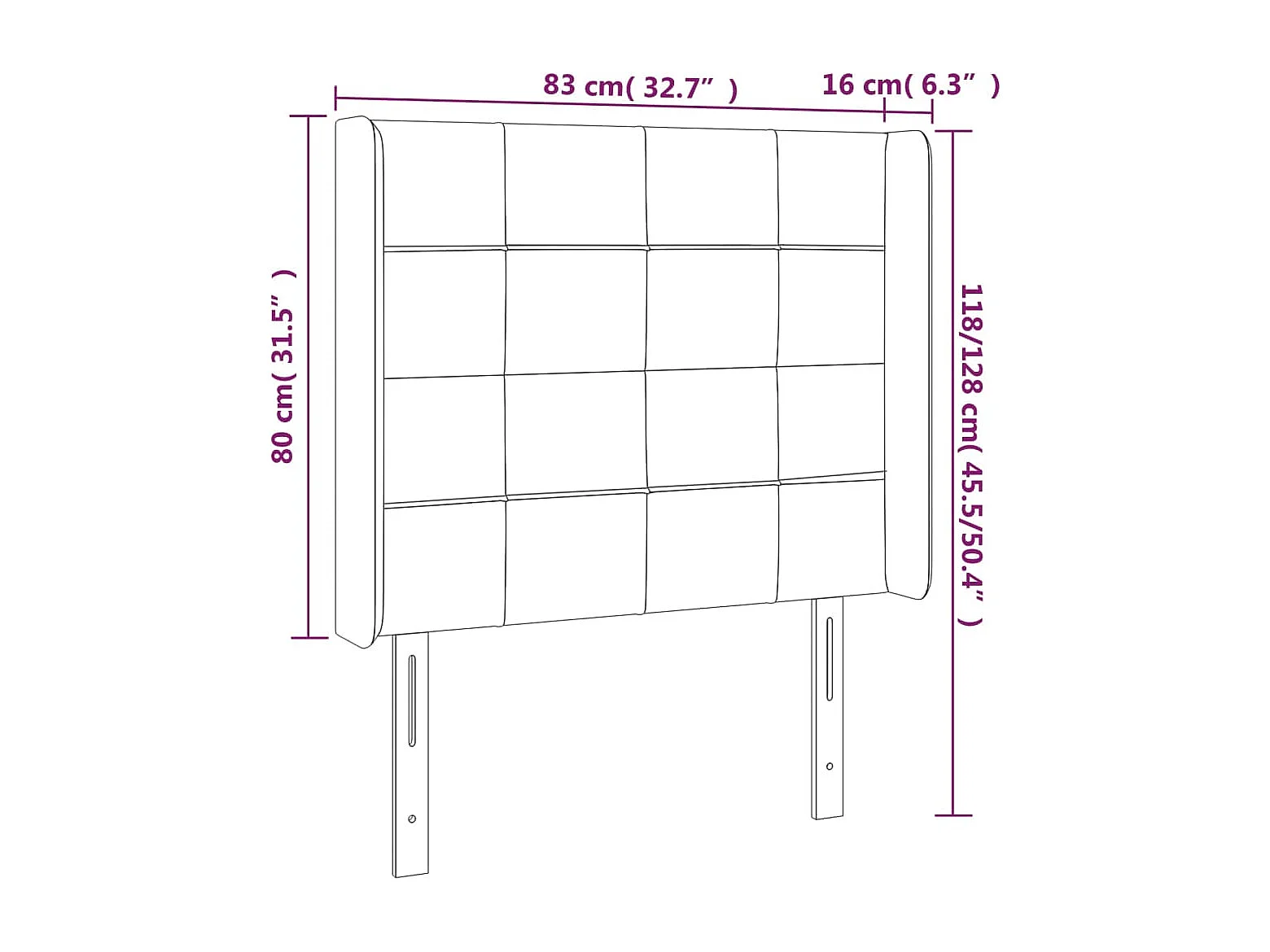 Cabecero | Cabezal de Cama | Mueble cabecero con orejas de tela gris oscuro 83x16x118/128 cm
