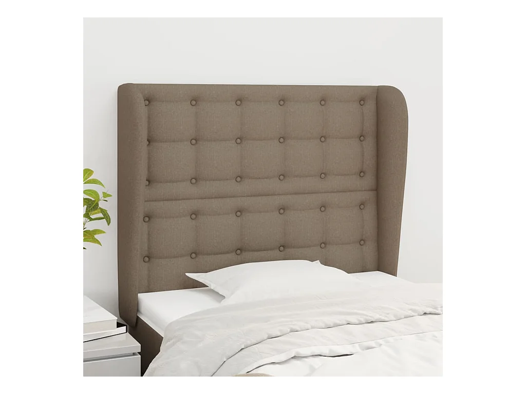 Cabecero | Cabezal de Cama | Mueble cabecero con orejas de tela gris taupe 93x23x118/128 cm