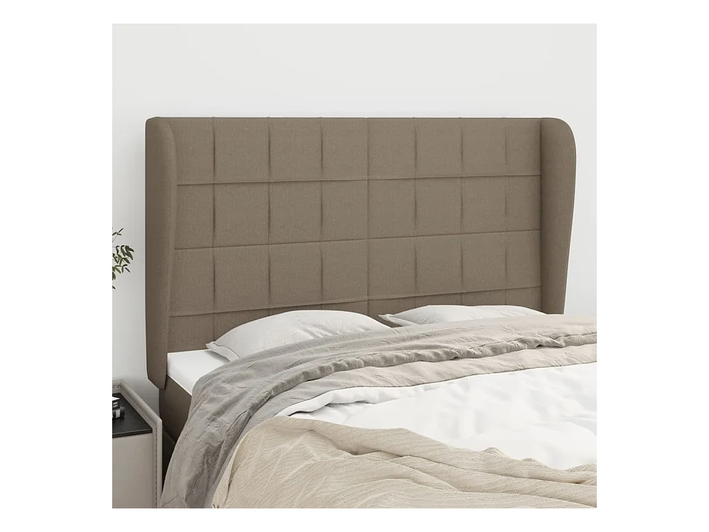 Cabecero | Cabezal de Cama | Mueble cabecero con orejas de tela gris taupe 147x23x118/128 cm