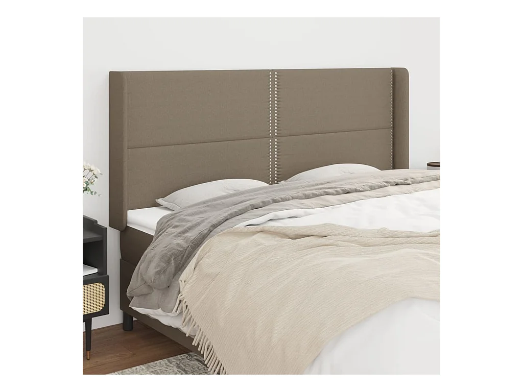 Cabecero | Cabezal de Cama | Mueble cabecero con orejas de tela gris taupe 183x16x118/128 cm