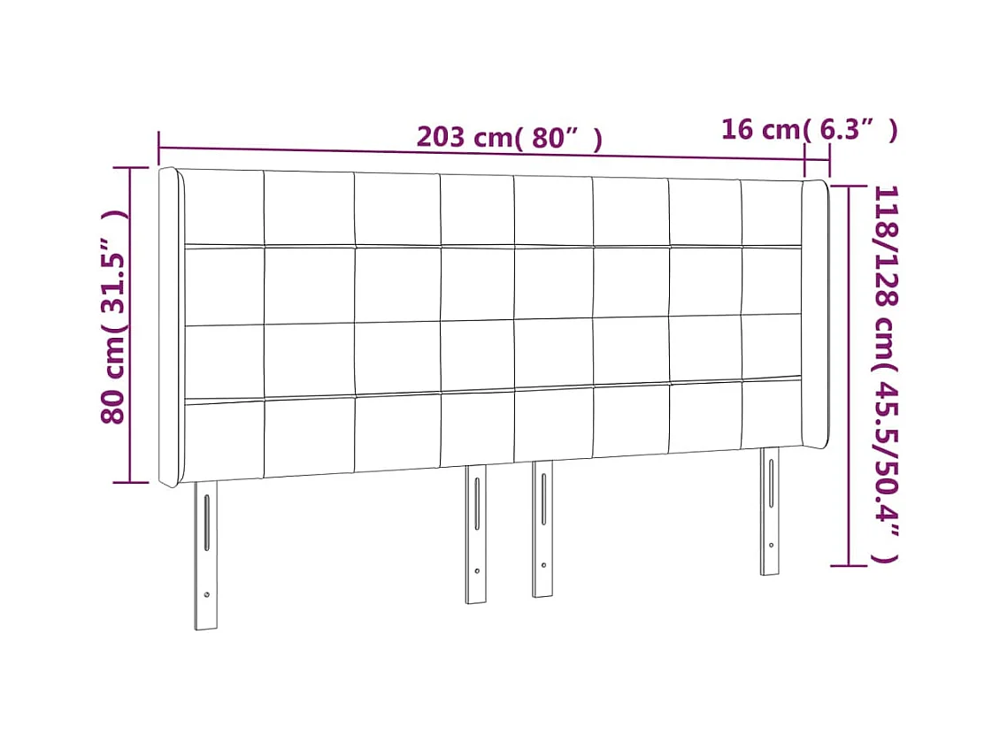 Cabecero | Cabezal de Cama | Mueble cabecero con orejas de tela gris taupe 203x16x118/128 cm