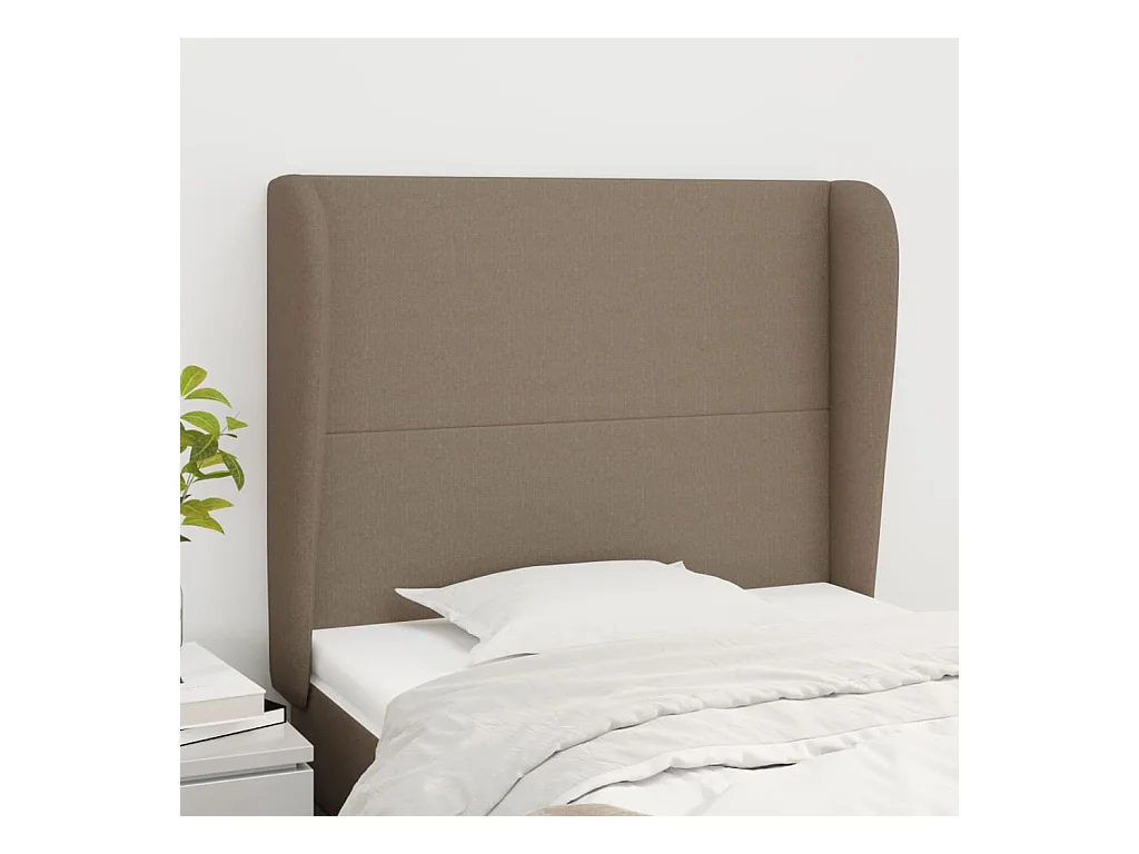 Cabecero | Cabezal de Cama | Mueble cabecero con orejas de tela gris taupe 93x23x118/128 cm