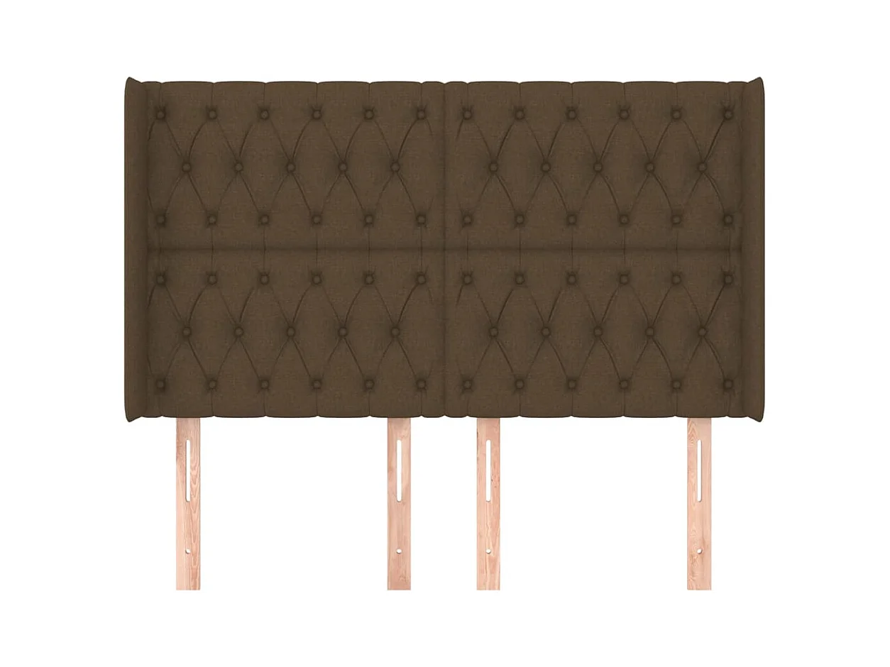 Cabecero | Cabezal de Cama | Mueble cabecero con orejas de tela marrón oscuro 163x16x118/128 cm