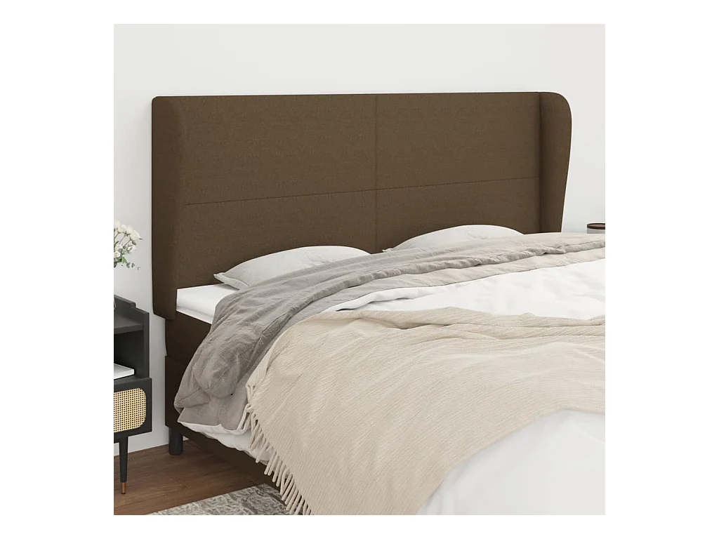 Cabecero | Cabezal de Cama | Mueble cabecero con orejas de tela marrón oscuro 163x23x118/128 cm