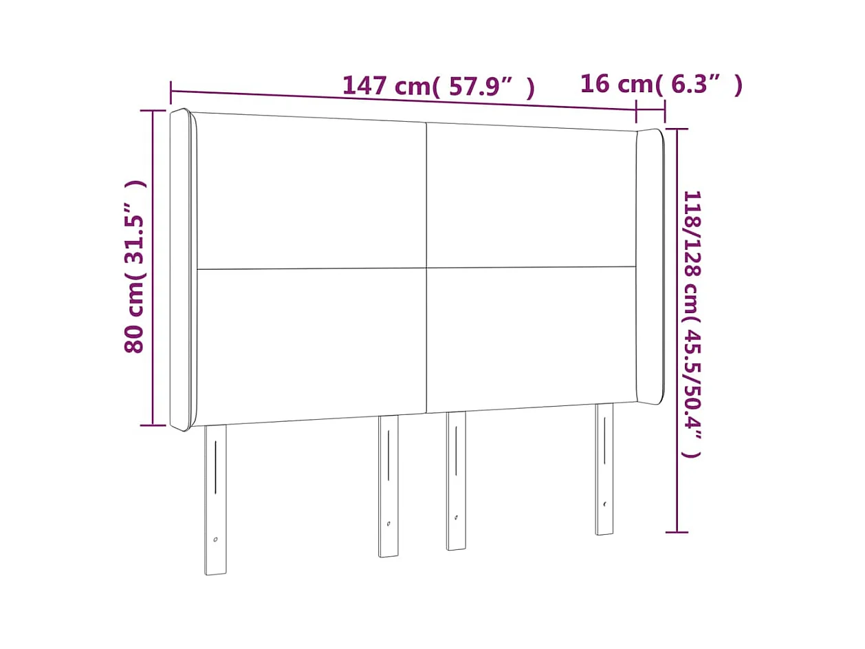 Cabecero | Cabezal de Cama | Mueble cabecero con orejas de tela negro 147x16x118/128 cm
