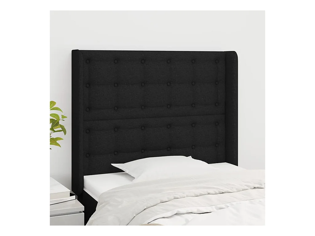 Cabecero | Cabezal de Cama | Mueble cabecero con orejas de tela negro 93x16x118/128 cm