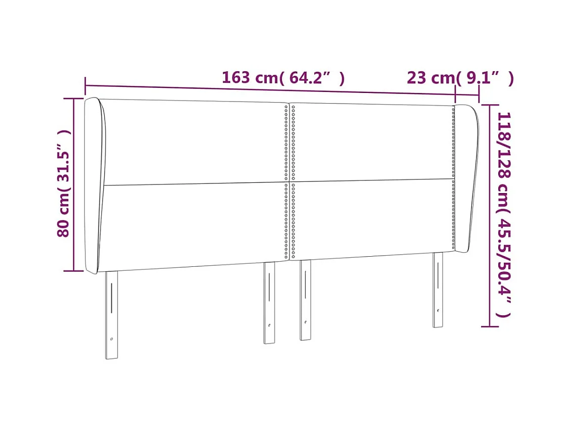 Cabecero | Cabezal de Cama | Mueble cabecero con orejas de terciopelo azul oscuro 163x23x118/128 cm
