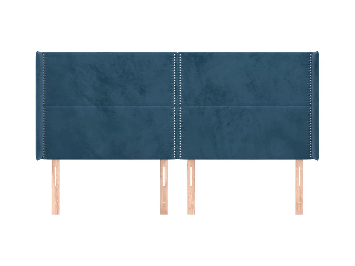 Cabecero | Cabezal de Cama | Mueble cabecero con orejas de terciopelo azul oscuro 183x16x118/128 cm